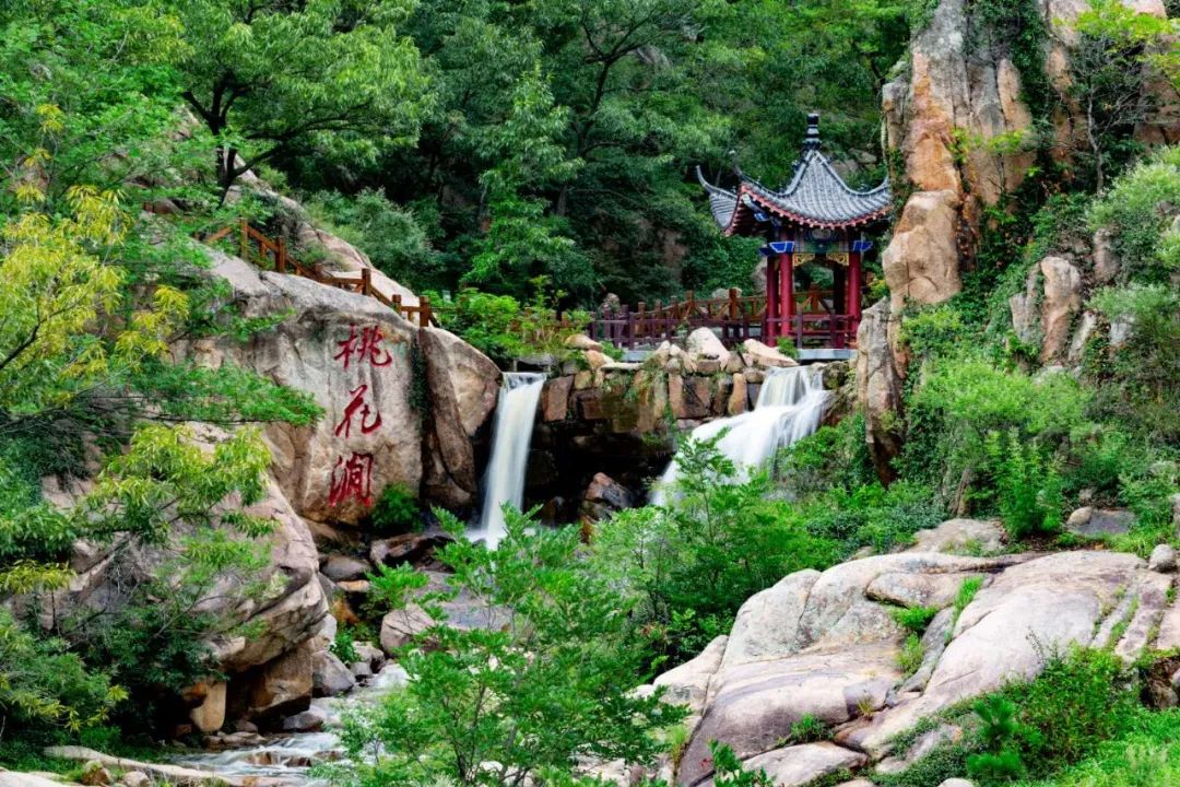 桃花涧山青水秀,谷幽涧深,峰峦挺秀,林壑优美,涧水潺潺,似屏如画。使人恍若置身陶渊明所述世外桃源之中。景区整个山体形似国画,山石各异,其中玉兔望月、猿人观涧、三蟾赶日、等众多景观,惟妙惟肖。主峰马耳峰海拔427.7米。每年的4月桃花遍开,桃花与涧水相互掩映,风景如画般美丽,因此名曰“桃花涧”。